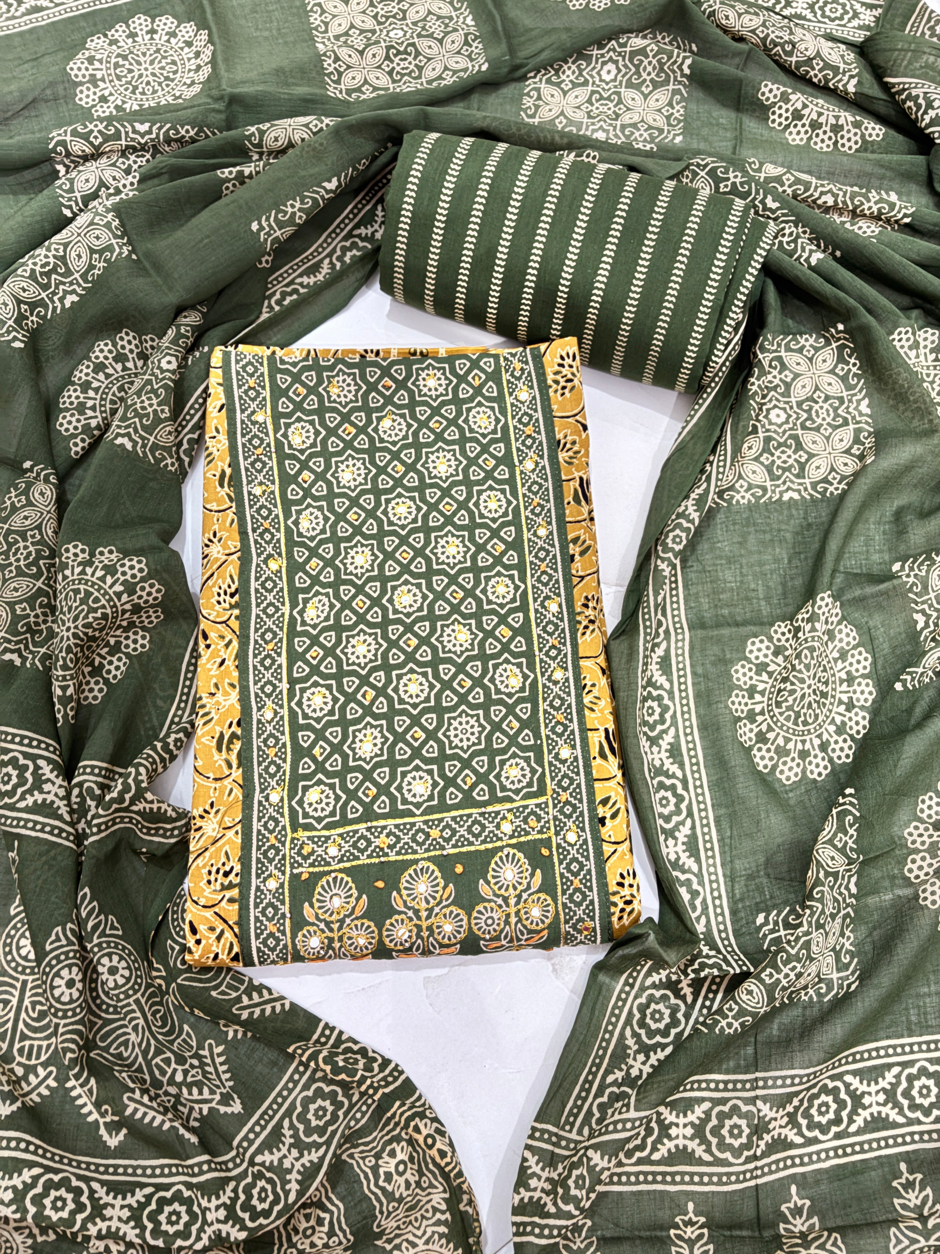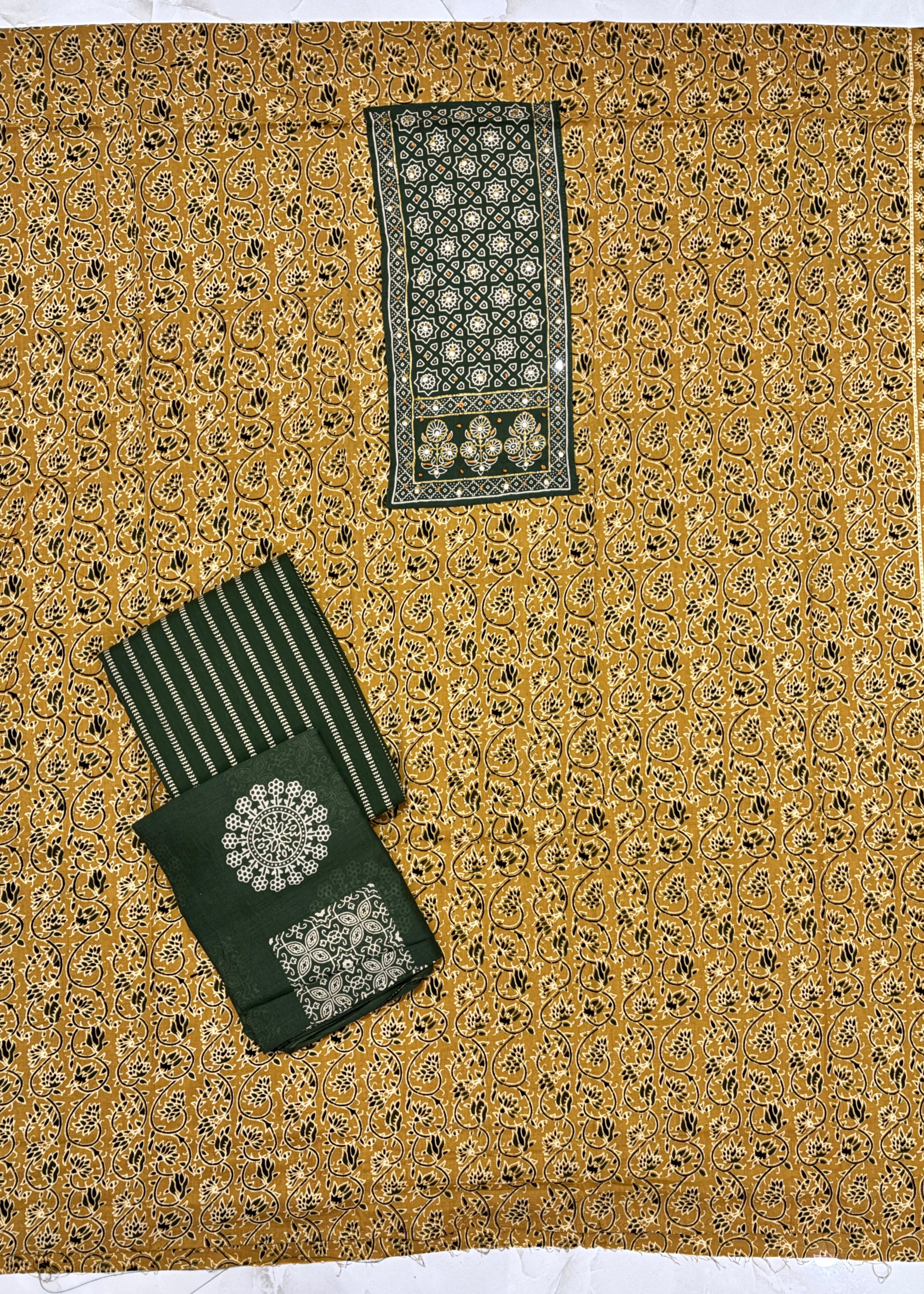 Features a rich mustard base adorned with intricate floral patterns.Pure cotton material give you full comfort.The contrast of muted green adds a sophisticated touch.Crafted from high-quality materials ensuring comfort and breathability.Perfect for festive occasions, celebrations, or everyday wear.Easily styled for both casual and formal events.Size fits upto xxxl
